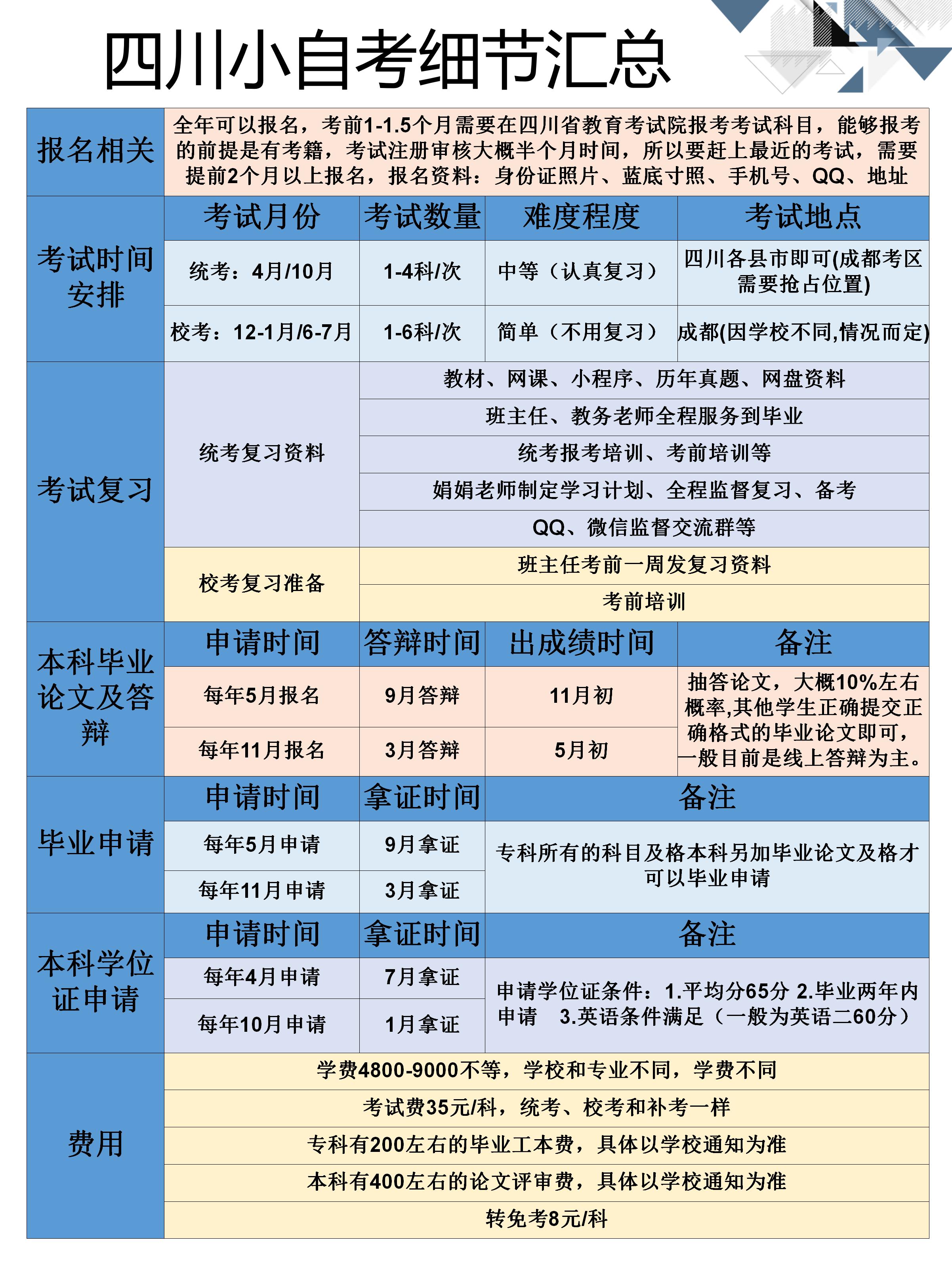 每年考试都是按以上安排循环进行,报名后按照最近一次考试进行安排,考完专业规定的所有科目即可毕业。
